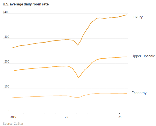 LUXURY: Luxury hotel room rates hit record highs as affluent Americans keep spending on experiences (see chart below). Read more here.
